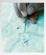 This is the procedure by which the material created in the mending section is integrated in the desired piece. This missing portion is integrated in different ways depending on the type of art. All the crafts have to be compatibles with the art and the materials used at this time.