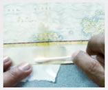 With specialized selected chemicals, stains are removed, depending of the procedures, media, pigment and materials used by the artist, the adequate chemical is used.